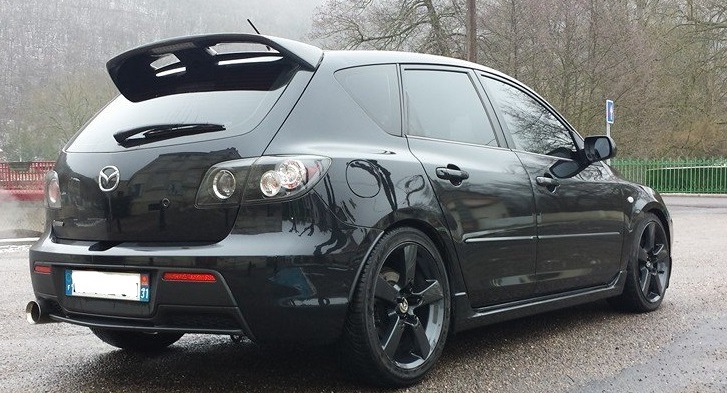 Ma belle donc une Mazda3 MPS de fin 2007 noir jantes rx8 noir avec prépa moteur et optimisation fait par Njaka sinon elle à béquet carbone Amortisseurs blistein av/ar coté prépa Moteur